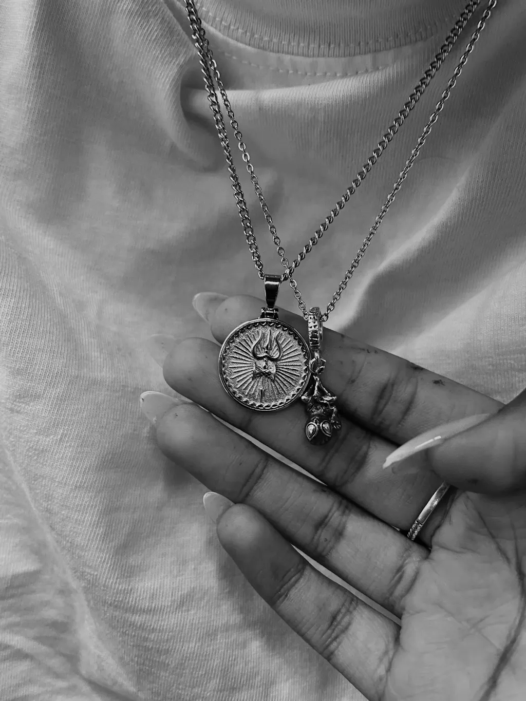 Crafted from premium stainless steel with a sleek silver-tone finish, this pendant embodies the essence of spirituality while offering a modern and minimalist design.